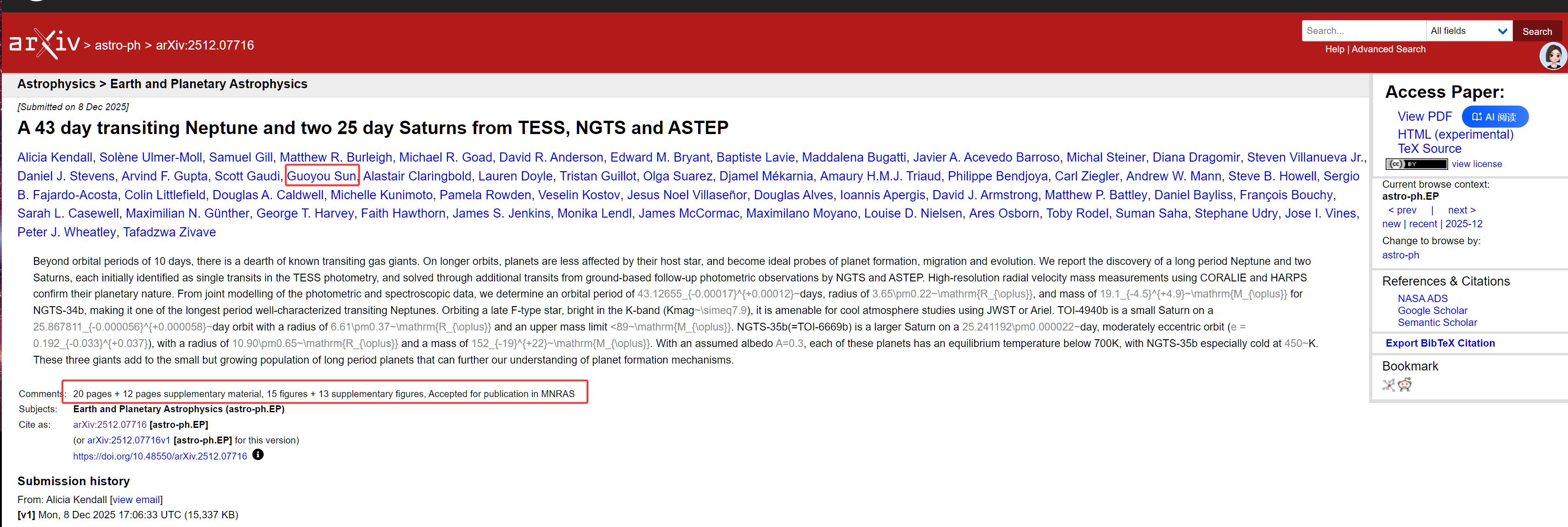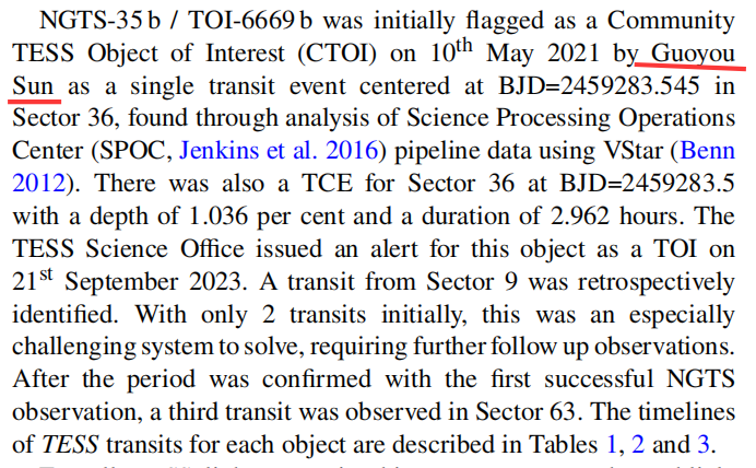 终于迎来了我的第二颗系外行星发现!第一颗是参与系外行星公众科学项目时,和众多爱好者一起协作找到的;而这一颗,是我凭借自己的能力,独立完成 TESS 数据的分析发现。第一颗发现以前还被人吐槽,参与发现不是真正发现,现在总算扬眉吐气了。 论文已经被MNRAS接收,很快就会正式发表。